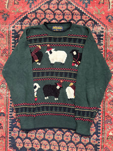 VINTAGE DARK GREEN WOOLRICH SHEEP KNIT SIZE SMALL -